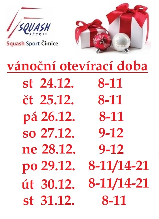 Sobota 18.1. start 17:00 Startovné 390,- na místě hotově Občerstvení a hezké odměny v ceně. Registrace na squash-sport@email.cz do pátečního večera Turnaj je určený pro všechny rekreační hráče (lepší hobíky)